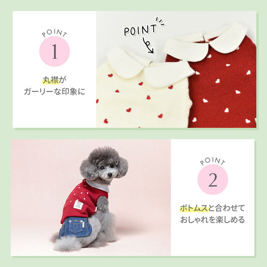 襟付きハート柄ニット XS/S/M/L/XL/XXL TINOTITO -ティノティート- 犬服 ドッグウェア TT24AW