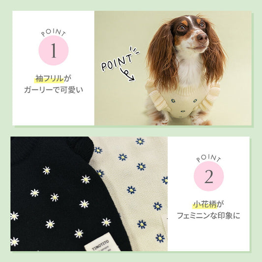 袖フリルデイジーニット XS/S/M/L/XL/XXL TINOTITO -ティノティート- 犬服 ドッグウェア TT24AW