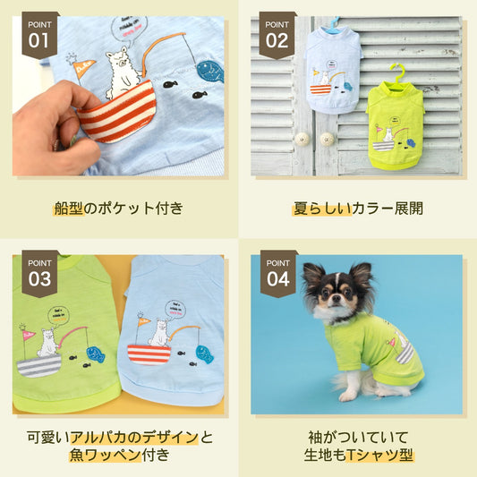 アルパカ魚釣りTシャツ S/M/L/XL Dulce-ドゥルチェ- 犬服 ドッグウェア DU24SS du241120-1