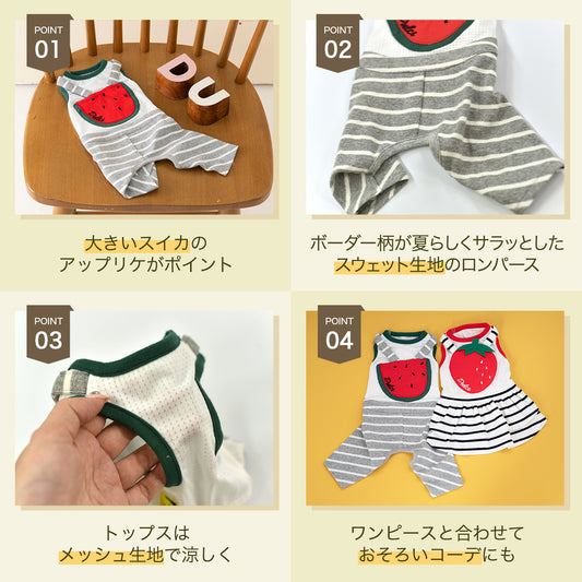 スイカアップリケつなぎ S/M/L/XL Dulce-ドゥルチェ- 犬服 ドッグウェア DU24SS du241130-1