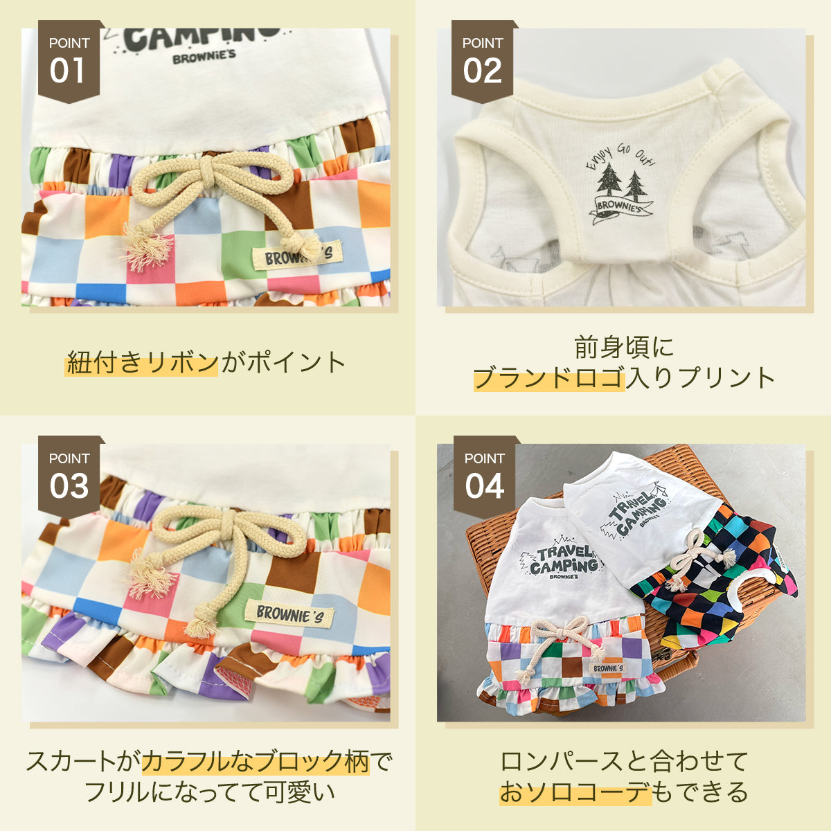 カラフルブロックワンピ S/M/L/XL/XXL BROWNIE'S-ブラウニーズ- 犬服 ドッグウェア 小型犬 BR24SS br241761-1