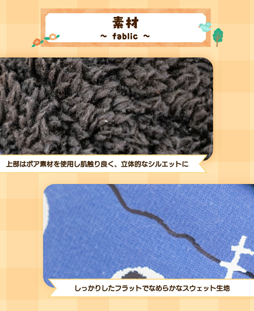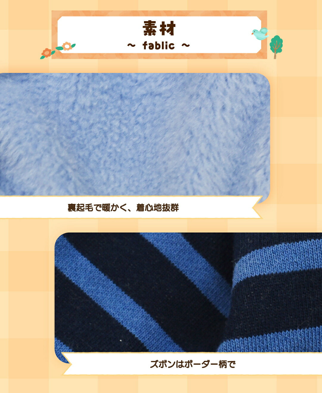 上身頃:綿 50% ポリエステル 45% ポリウレタン 5% パンツ:ポリエステル 60% 綿 40% リブ:綿 96% ポリウレタン 4% 別布:ポリエステル 100% |
