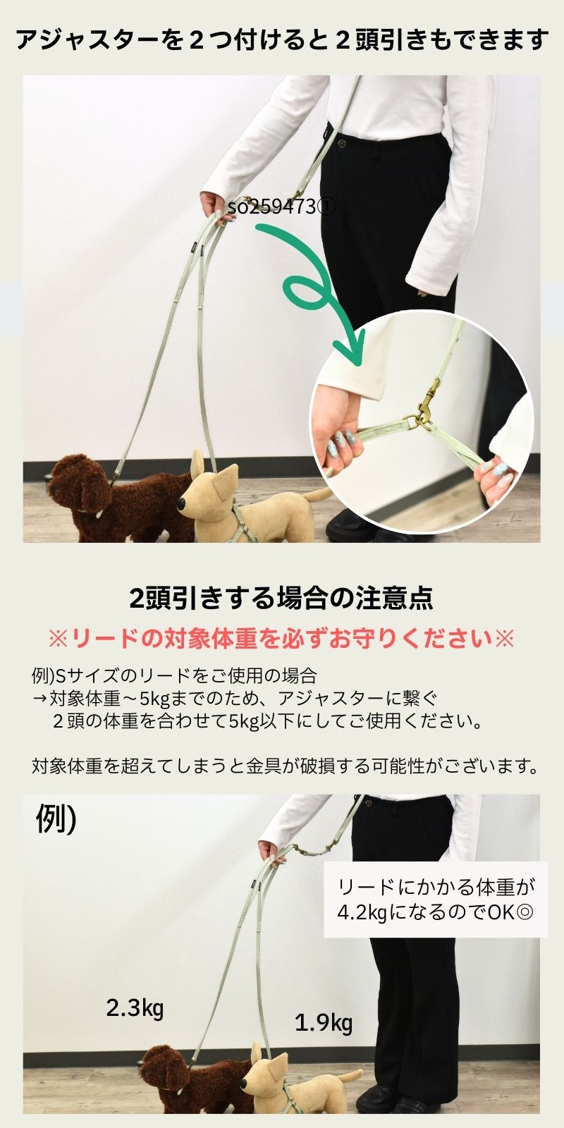 S/M/L ・S 幅:1.0cm 長さ:120cm 推奨体重:5.0kg以下 ・M 幅:1.5cm 長さ:120cm 推奨体重:8.0kg以下 ・L 幅:2.0cm 長さ:120cm 推奨体重:13.0kg以下 |