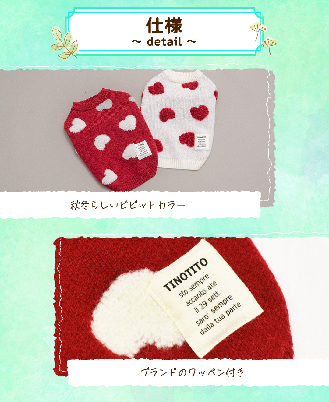 ハート柄ニット XS/S/M/L/XL/XXL TINOTITO -ティノティート- 犬服 ドッグウェア TT25AW tt251417