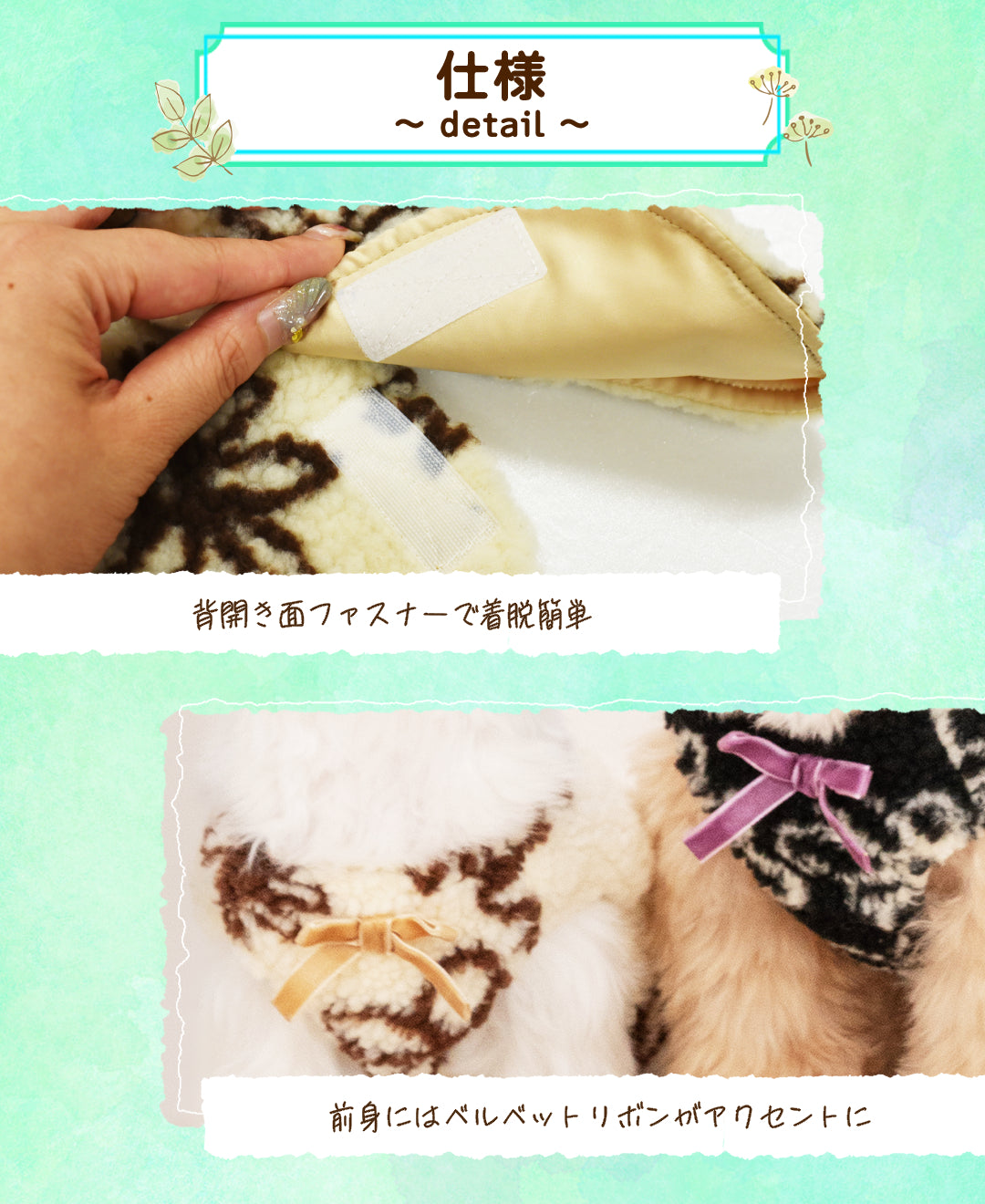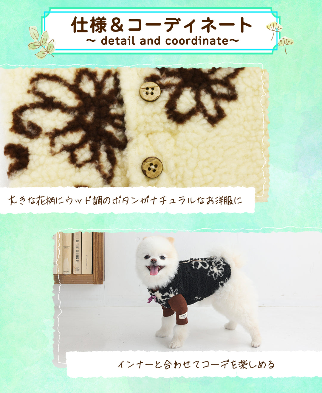 背開き花柄ボアベスト XS/S/M/L/XL/XXL TINOTITO -ティノティート- 犬服 ドッグウェア TT25AW tt251423